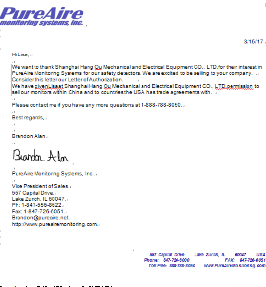 2017年P(guān)ureAire公司上海航歐中國區(qū)銷售